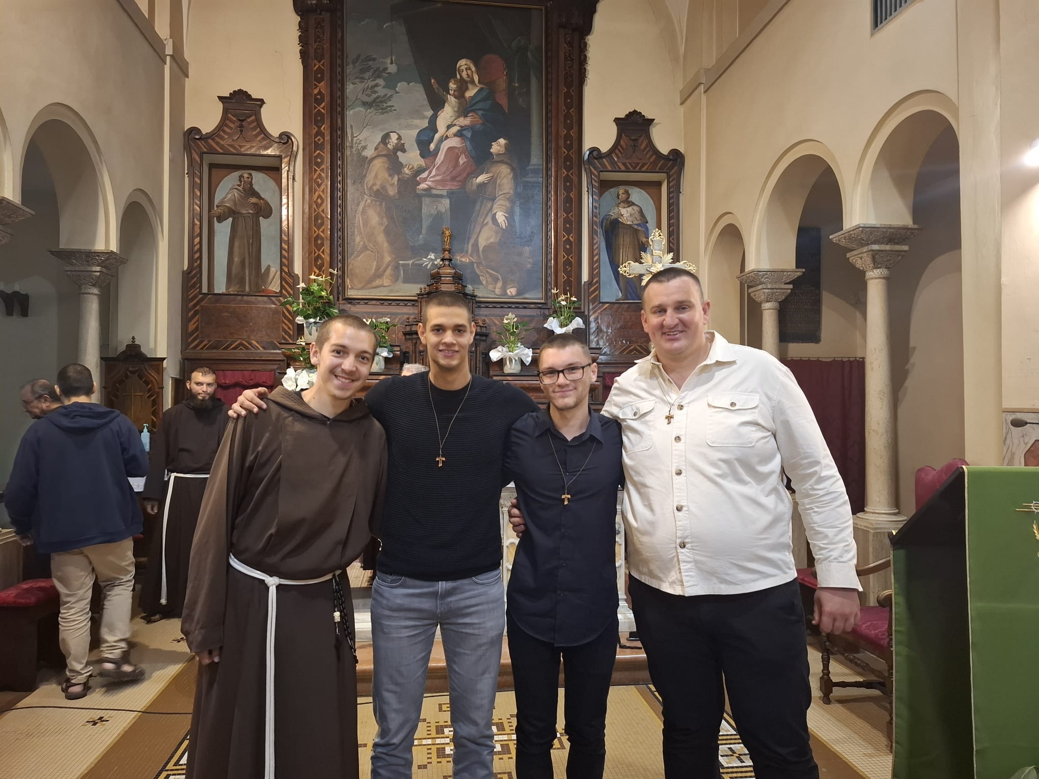 Dana 16. listopada 2025. godine naša tri kandidata – Krunoslav Pavković, Marin Ivanišević i Mario Dermišek zajedno s još šestoricom mladića iz Italije i Francuske primljeni su u našu Međuprovincijsku postulaturu u Scandianu. Na obred primanja pristigao je iz Tortone i naš novak Fran Poljak.